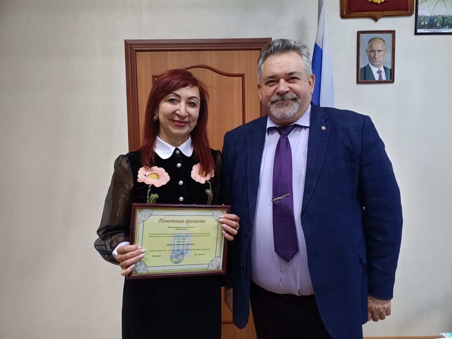 Василий Ложкин вручил сотруднице министерства Почетную грамоту