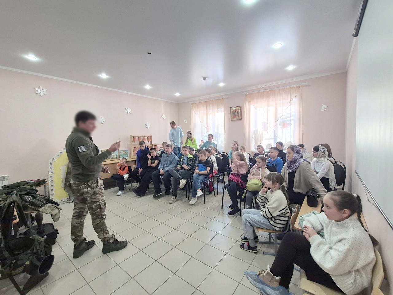 В воскресной школе Никольского храма в Терновке состоялся урок мужества. Ребята пообщались с участником специальной военной операции Александром.