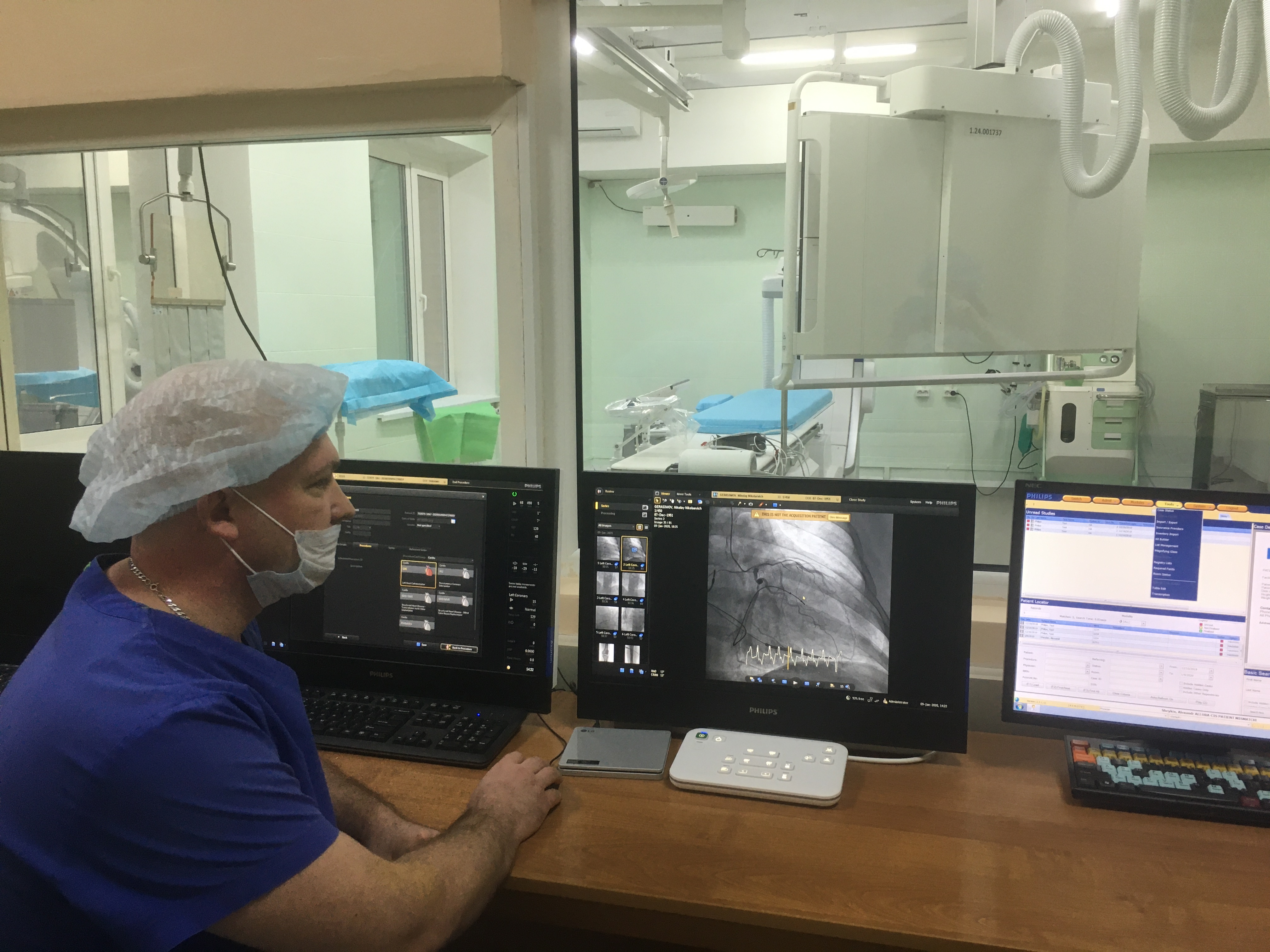 Врач по рентгенэндоваскулярным диагностике и лечению Антон Столяров совместно с заведующим отделением рентгенхирургических методов диагностик и лечения Алексеем Соколовым продемонстрировали владение современной технологией оказания медицинской помощи.
