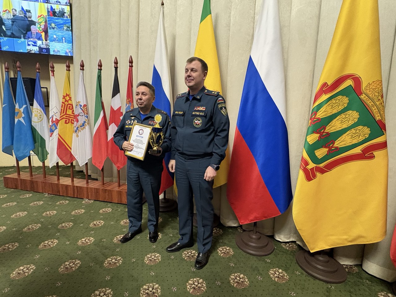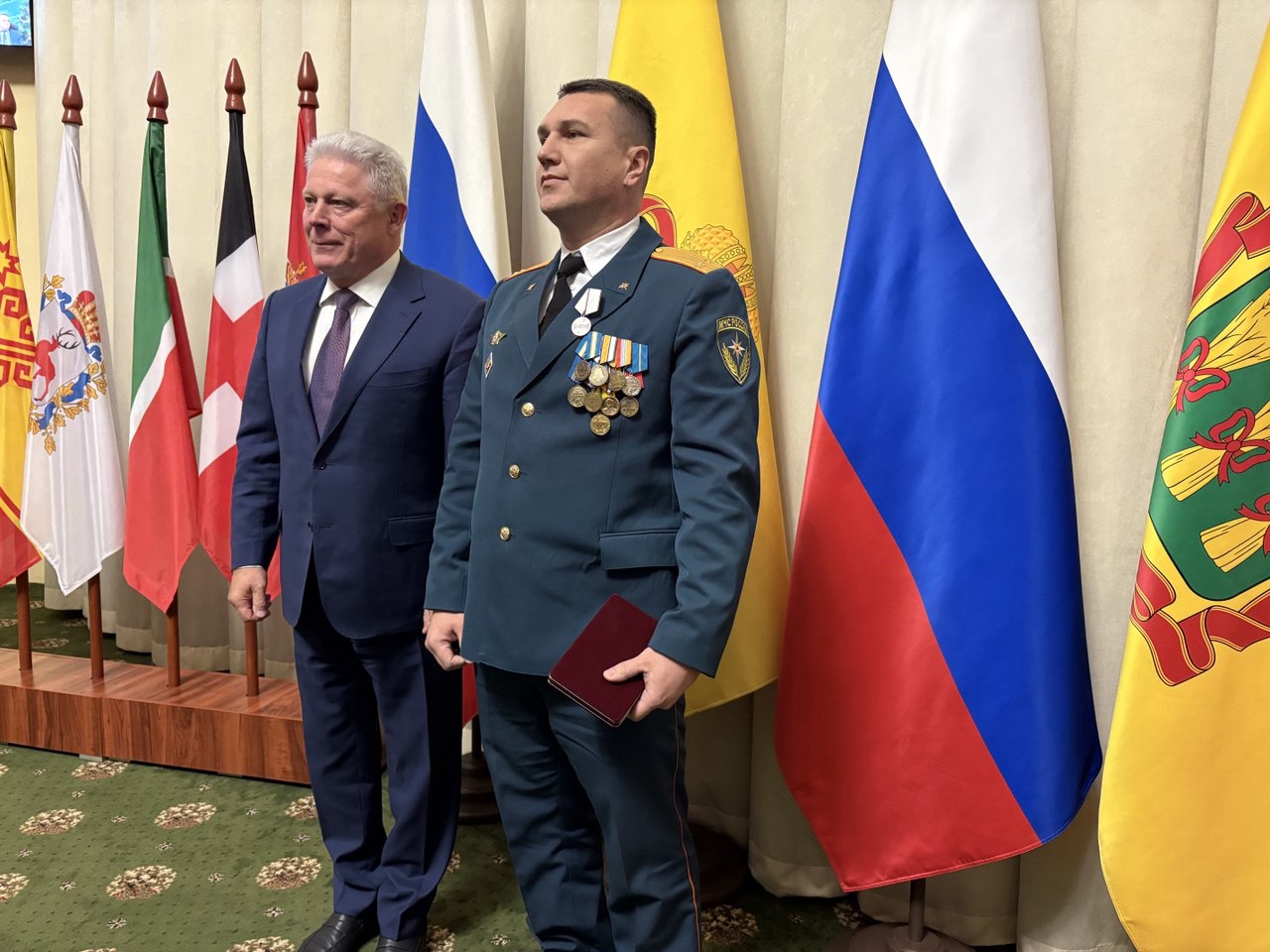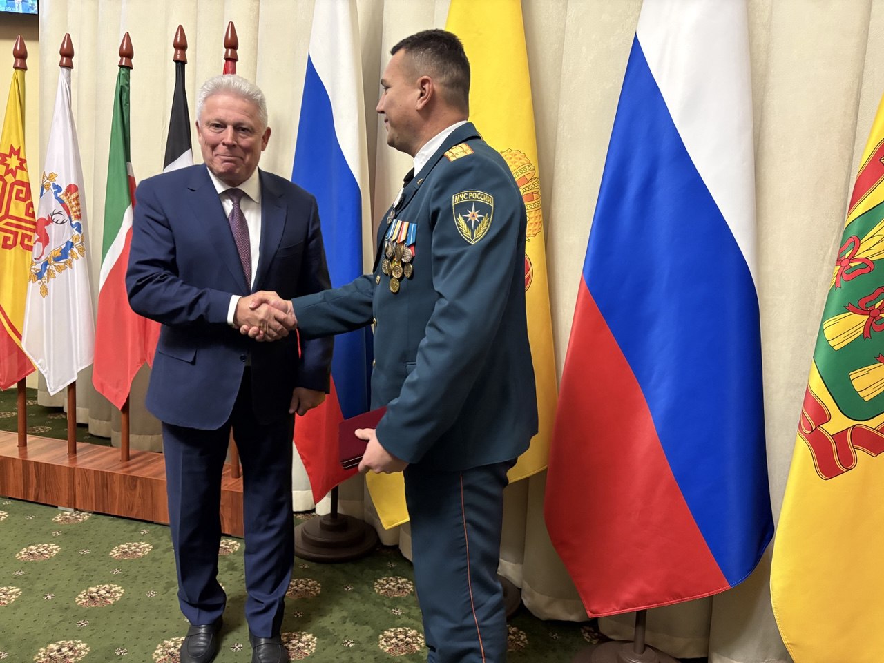 После итогового заседания Межведомственной комиссии по ЧС в правительстве Пензенской области прошла торжественная церемония. Награды отличившимся вручали заместитель министра МЧС России Вячеслав Бутко и заместитель полномочного представителя Президента в ПФО Игорь Паньшин.
