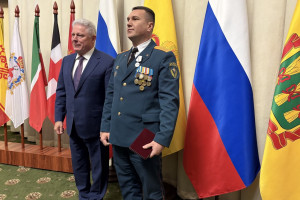 Государственную награду - медаль «За спасение погибавших» - получил подполковник внутренней службы Дмитрий Москвитин, заместитель начальника службы пожаротушения ГУ МЧС по региону.