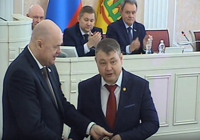 Вновь избранному депутату вручили удостоверение и знак.