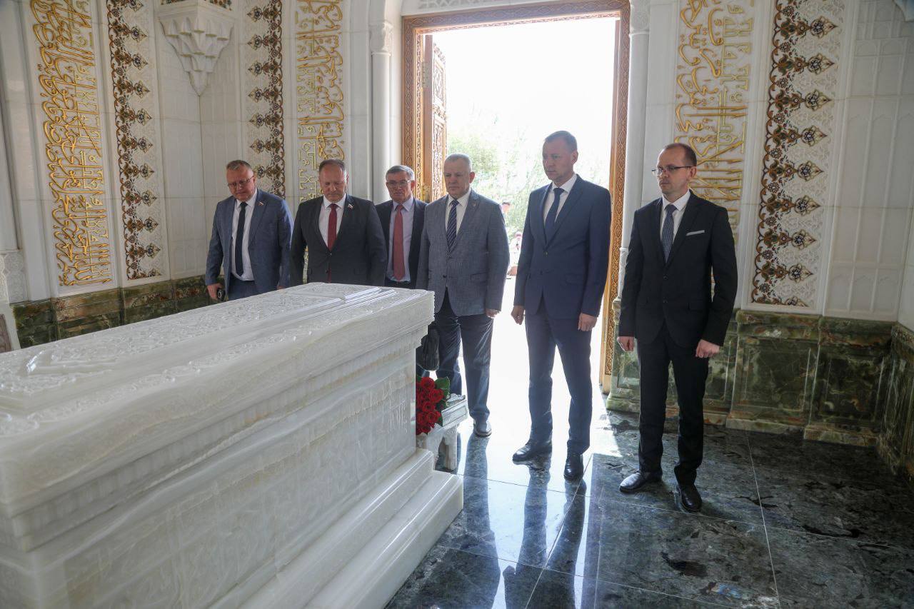 Вместе с заместителем хокима Самаркандской области, начальником управления инвестиций и внешней торговли Ойбеком Нематовичем Хамраевым, Олег Мельниченко возложил цветы на могилу первого Президента страны в Старом Городе.