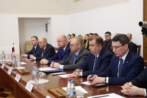 Рабочая встреча губернатора Олега Мельниченко с председателем Могилевского областного исполнительного комитета Республики Беларусь Анатолием Исаченко состоялась с участием спикера Законодательного Собрания Пензенской области Вадима Супикова, в четверг, 3 апреля 2025 года.