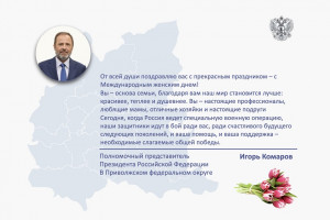 Дорогие женщины, пусть этот весенний праздник принесет вам искреннюю радость, тепло, любовь и внимание близких. Желаю вам крепкого здоровья, счастья, благополучия и неиссякаемой энергии для новых свершений!», - сказал Игорь Комаров