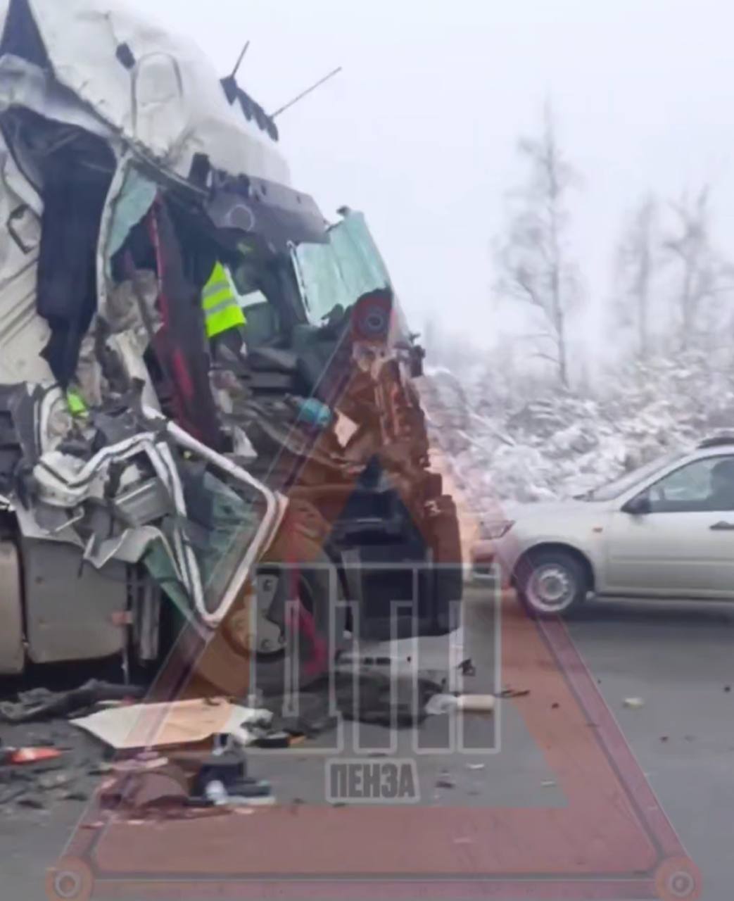 07 февраля 2026 г., РИА Пензенской области. На федеральной трассе М-5 «Урал» в границах Пензенской области произошло серьёзное дорожно-транспортное происшествие с участием двух грузовых автомобилей.