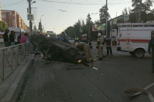 В четверг, 18 июня, в 4:30, на улице Калинина произошло столкновение двух легковых автомобилей. Один из автомобилей перевернулся, люди оказались заблокированы внутри.