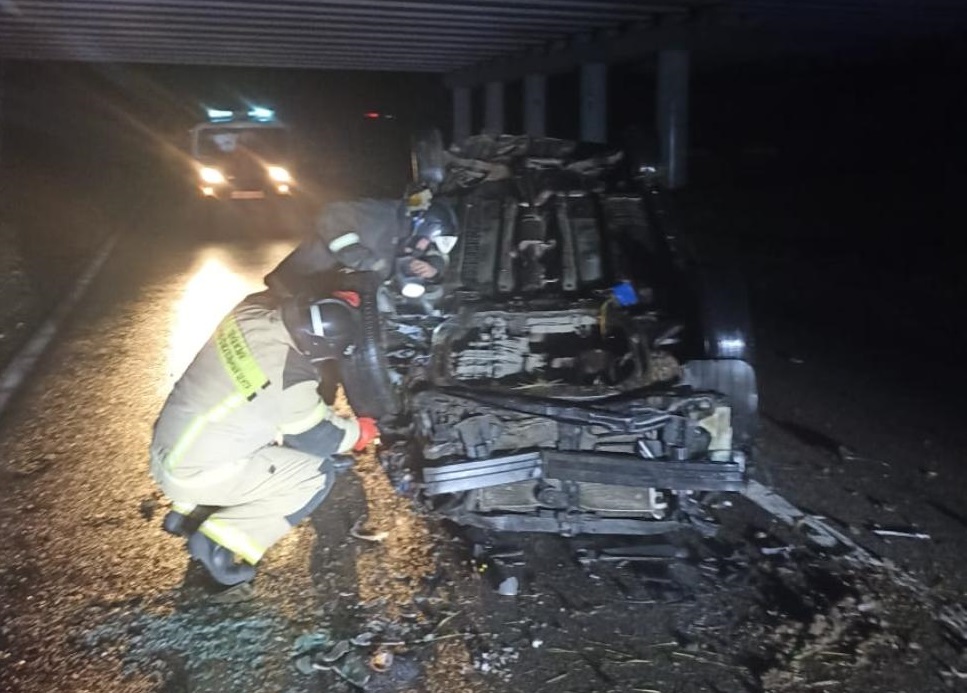На место происшествия незамедлительно выехали расчеты пожарно-спасательного центра. Спасатели провели работы по стабилизации транспортного средства и отключили аккумуляторную батарею аварийного автомобиля.