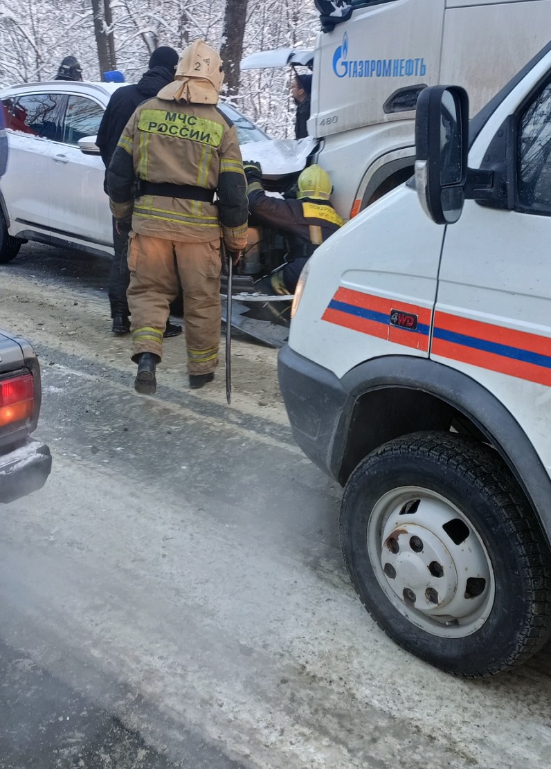 По предварительным данным, в 15:45 на улице Нейтральной столкнулись три машины: внедорожник Exeed под управлением 44-летней женщины, КамАЗ с 33-летним мужчиной за рулем грузовик Shacman с полуприцепом Ros-Rosa с 29-летним шофером.