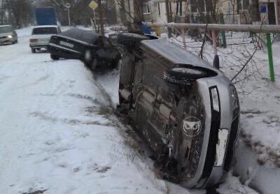 Судя по фото, итогом происшестия стало то, что две машины оказались в вырытой на внутридворовой территории канаве. Одна из них свалилась набок и застыла в этом положении. Вторая осталась в горизонтальном положении, заехав в траншею обоими колесами.