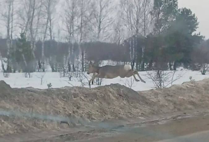 18 марта 2026 г., РИА Пензенской области. На дороге автомобилисты заметили дикое животное, перебегавшую проезжую часть.