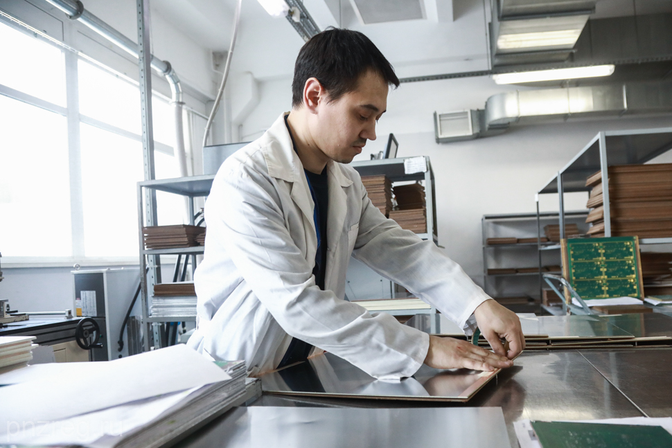 Денису Мантурову показали процесс создания продукции - печатных плат и других изделий.