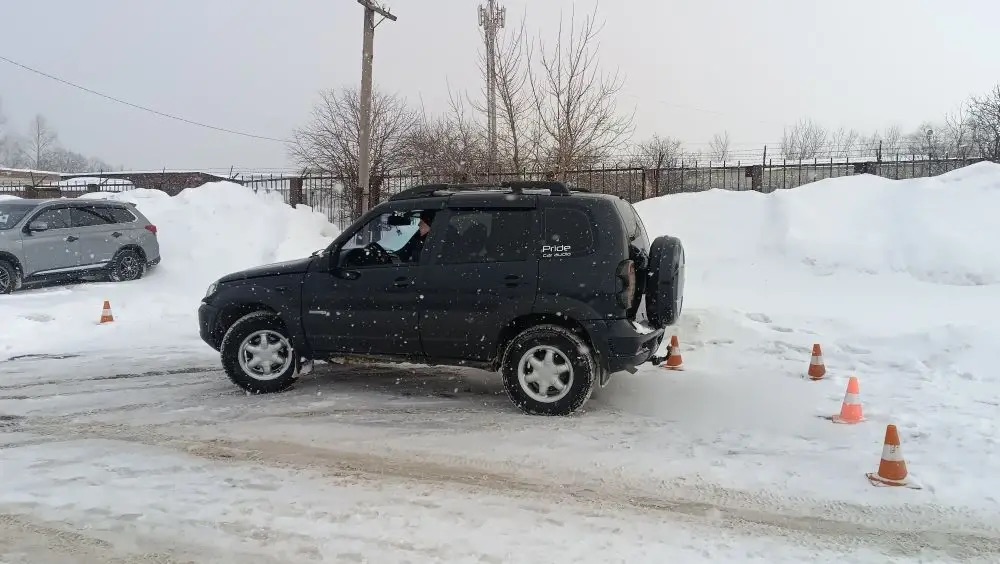 Спортсмены из Кузнецка и Пензы состязались в фигурном вождении на снежной трассе с элементами биатлона, включая метание муляжей гранат. За каждую ошибку ко времени добавлялись штрафные секунды.