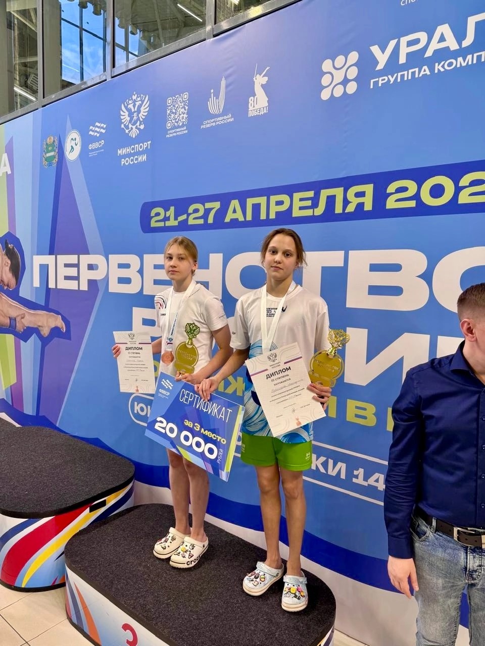 «Тимур Хайле Мариам завоевал серебряную медаль на вышке в группе «А», набрав 522,15 балла. Тимофей Салогаев также стал серебряным призером, но на 3-метровом трамплине в группе «В» с результатом 412,30 балла. Маргарита Кувшинова и Софья Лаврина в синхронных прыжках с вышки показали слаженную работу и завоевали бронзовые медали, набрав 238,17 балла», - рассказали в Минспорте Пензенской области.