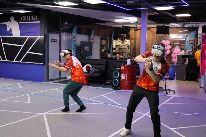 WARPOINT - это площадка для VR-игры. Спортсмены оказываются внутри захватывающей компьютерной «стрелялки»: они должны зарабатывать очки, с помощью виртуального оружия уничтожая противника в разных зонах и локациях.