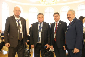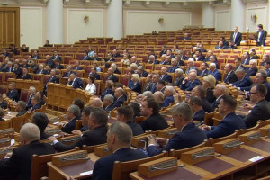 Глава государства поздравил сенаторов РФ, депутатов Государственной Думы, руководителей представительных органов регионов РФ, собравшихся в Таврическом дворце, с праздником - Днем российского парламентаризма. Владимир Путин напомнил, именно в этом зале 120 лет назад состоялось первое в истории Российской империи заседание Государственной Думы, наделенной законотворческими полномочиями.