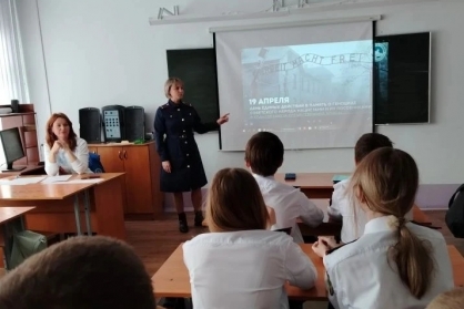 Кадетам рассказали о военных преступлениях, совершенных нацистами и их пособниками в отношении мирного населения, о деятельности нескольких концентрационных лагерей, о бесчеловечных условиях содержания узников, жестоком уничтожении миллионов людей. Приведены воспоминания тех, кто содержался в концлагерях и был освобожден советскими войсками.