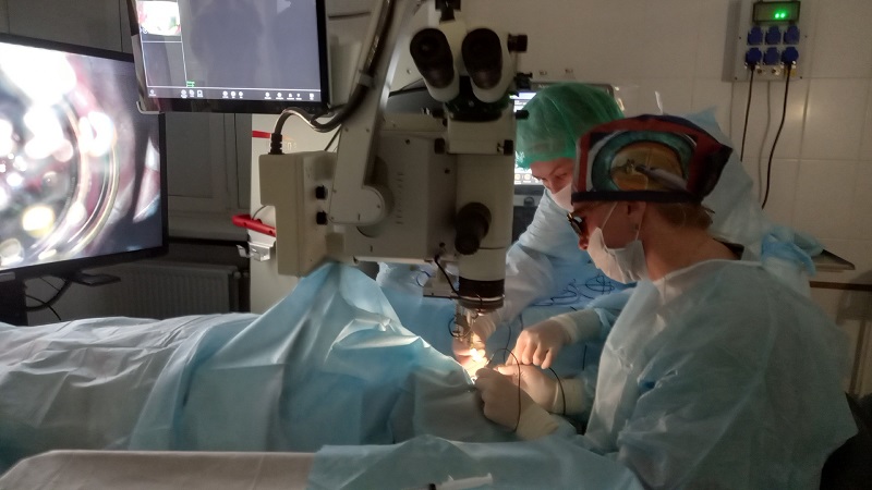 В понедельник, 16 февраля, офтальмолог Елена Болдырева провела хирургическое вмешательство с применением нового оборудования 75-летнему пациенту с отслойкой сетчатки. Для пожилого мужчины это уже вторая операция. На первом этапе ему удалили стекловидное тело, в котором находились тяжи (они-то и вызвали разрыв и отслойку сетчатки) и ввели специальную тяжелую жидкость, прижимающую и расправляющую сетчатку. С такой жидкостью больной находился три дня.