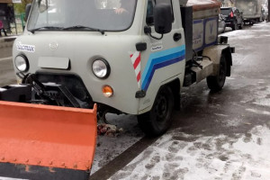 С раннего утра для противогололедной обработки проезжих частей была задействована специальная техника, одновременно с этим пешеходные зоны прометаются тракторными щетками и многофункциональными «Чистиками».