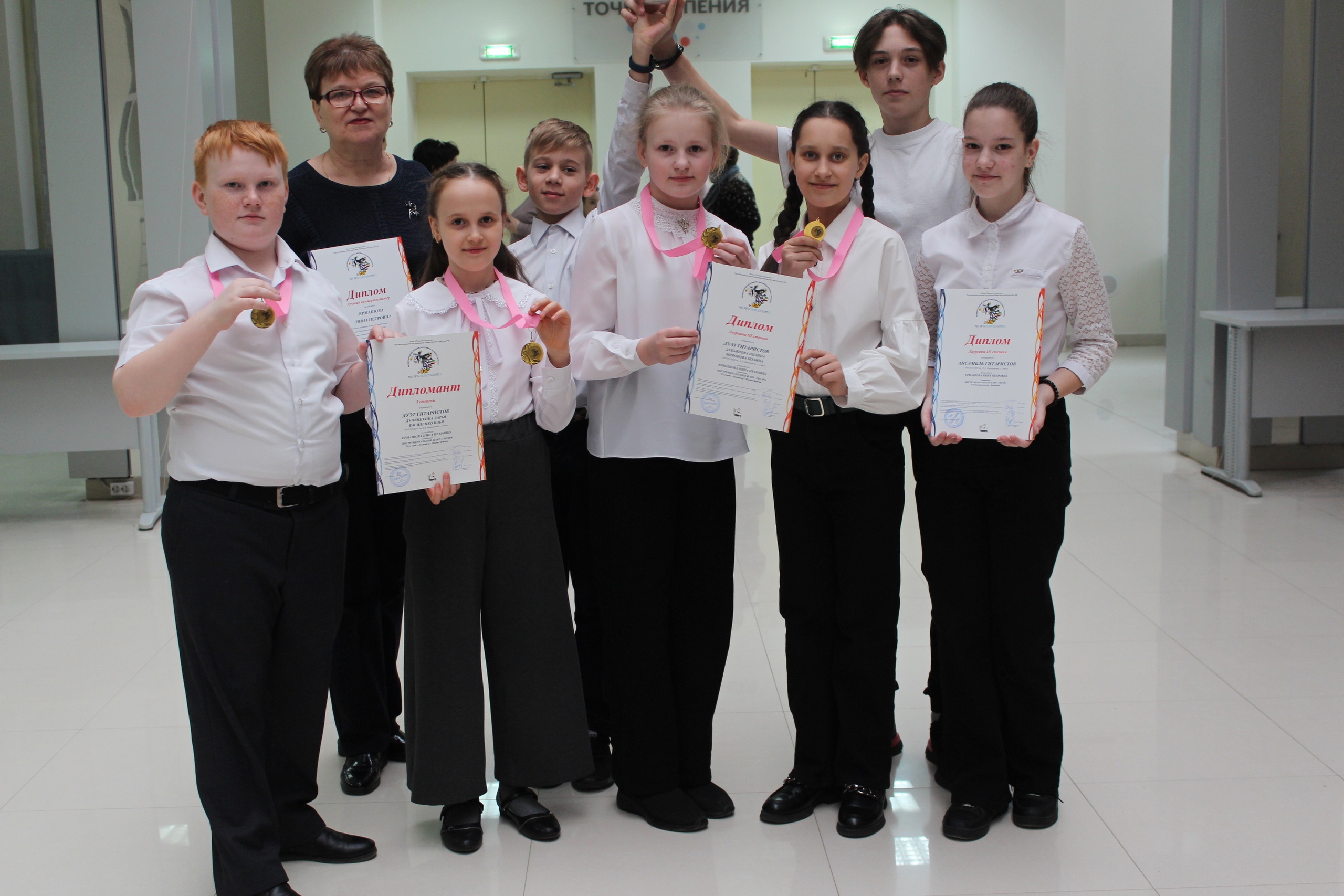 Дипломы 1 степени получили Дарья Морозова (фортепиано), дуэт гитаристов - Илья Василенко и Дарья Дунюшкина, Милана Дементьева (фортепиано), Олеся Самсонкина (эстрадный вокал);