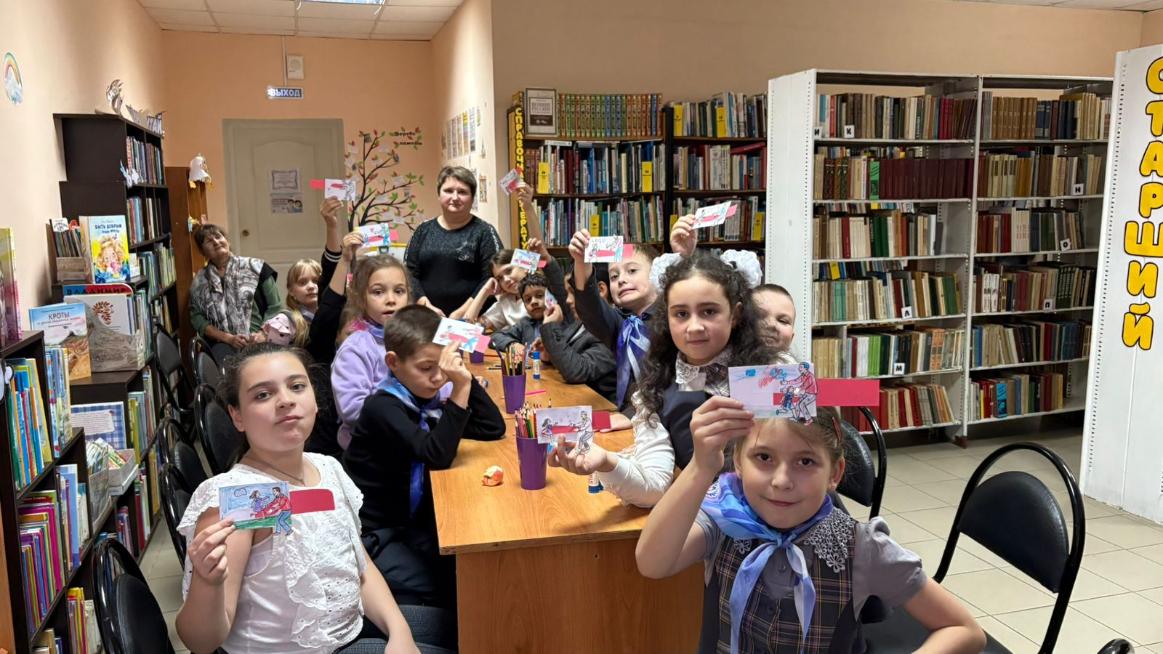 Библиотекари подготовили для ребят историческую справку о празднике, красочную презентацию и совместное изготовление оригинальных открыток для своих пап.