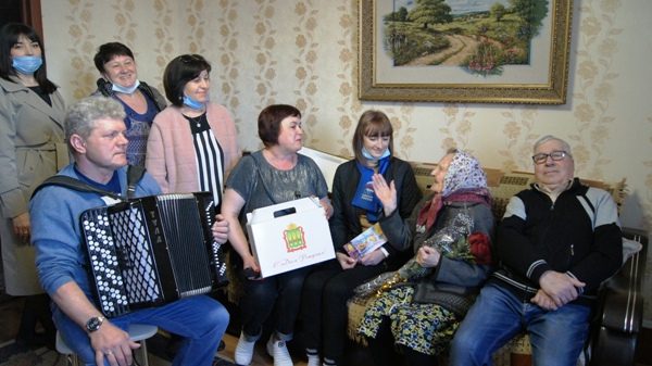 Представительница молодогвардейцев Ксения Попова прочитала ветерану стихи, а работники культуры Николай Куракин и Андрей Титов порадовали её песнями военной поры. Пожилая женщина была очень тронута вниманием, её глаза буквально лучились радостью, когда присутствующие дружно и весело пели «Катюшу».