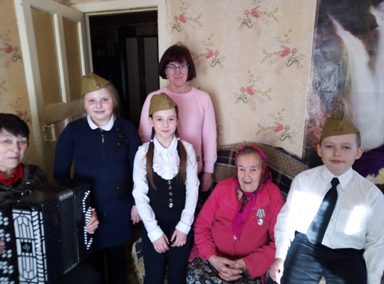Вручив Николаю Федоровичу Гурееву, Виктору Ивановичу Космылину, Лидии Ивановне Гнетовой, Лидии Сергеевне Касьяновой, Валентине Николаевне Евлениной и Валентине Николаевне Елисеевой, медали «75-летие Победы в Великой Отечественной войне 1941-1945 гг.», Любовь Ивановна пожелала уважаемым ветеранам здоровья и долголетия. А участники детской вокальной студии «Акцент» (руководители Н.П. Сидоркина и И.Н. Круглова) поздравили их веселыми частушками и стихами. Исполнив любимую песню «Катюша» вместе с детьми, пенсионеры сердечно поблагодарили гостей за теплый визит.