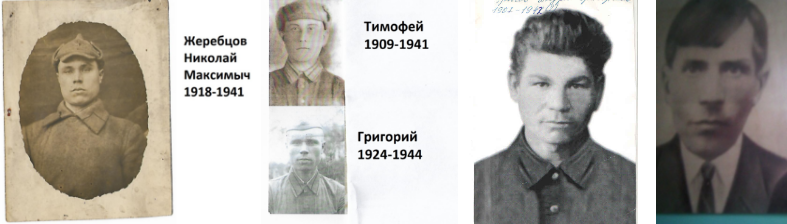 Старший сын Тимофей Максимович Жеребцов 1909 года рождения ушёл на фронт в августе 1941 года, воевал в Подмосковье, погиб во время боевых действий на Можайском шоссе в 1942 году.