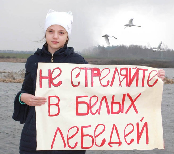 Школьница Алевтина Бураева, часто любующаяся лебедями (для этого благо далеко ехать не надо – от Вадинска до соседней деревни Тенёво километров 7), изготовила плакат по названию одноимённого кинофильма «Не стреляйте в белых лебедей!». Пятиклассница рассуждает: «Почему лебеди вдруг облюбовали вадинский пруд? Может быть, эти птицы неслучайно нас выбрали?»